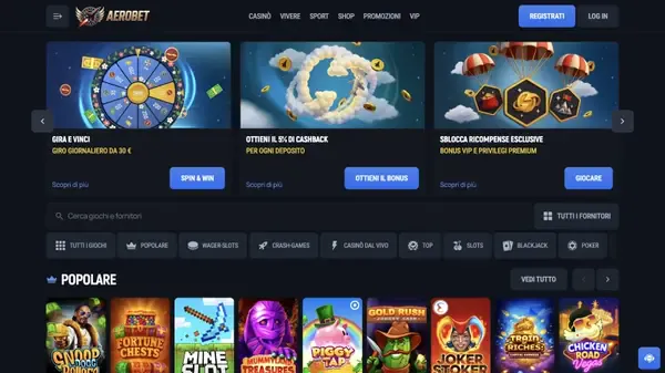 Aerobet Casino in Italia: info chiare, grande scelta di giochi e pagamenti semplici